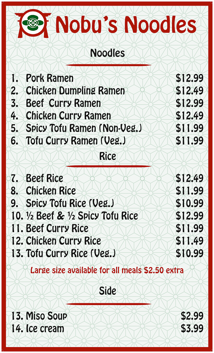 Nobu's Noodles Menu